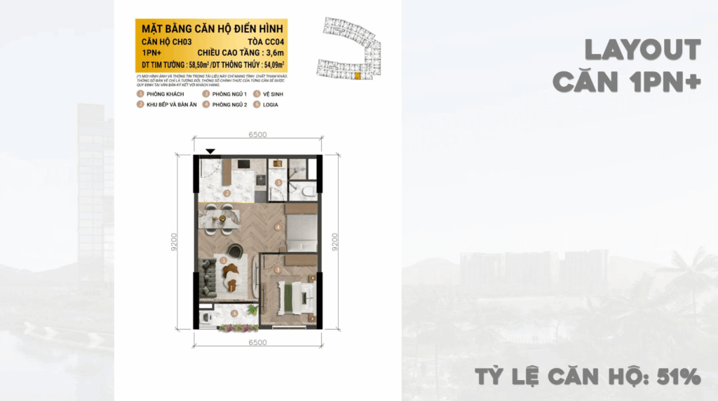 | Căn hộ 1PN+ | 50.2 – 63.5 | Liên hệ: 0905.277.868 | Không gian mở linh hoạt |
