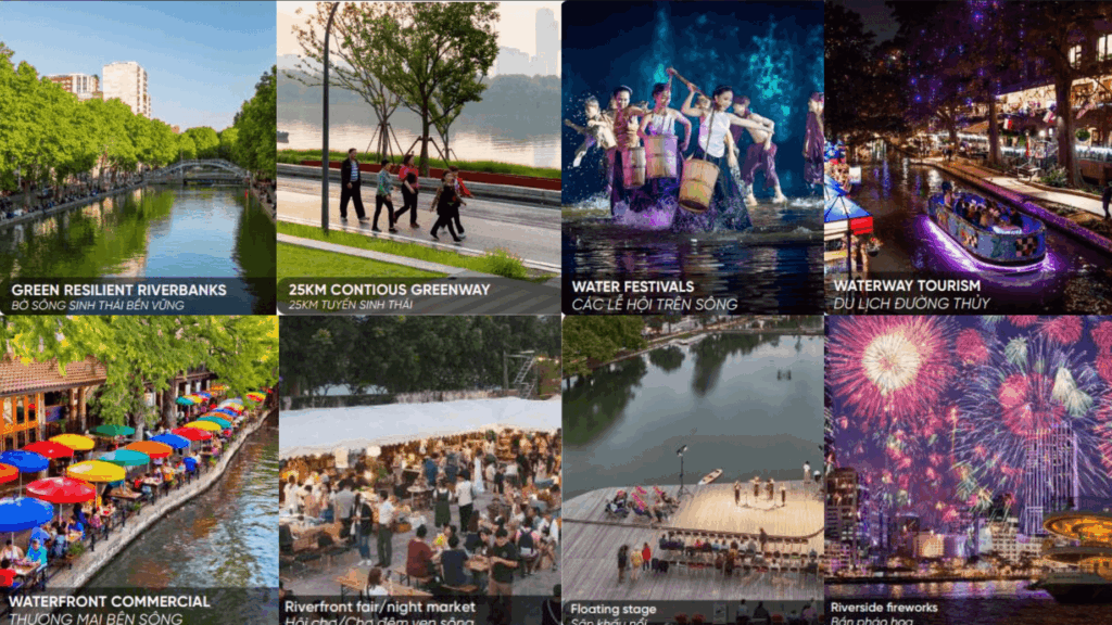 TTTM, đại công trình vui chơi giải trí, thương mại trên sông rộng 8Ha, 3 công viên chuyên đề,...